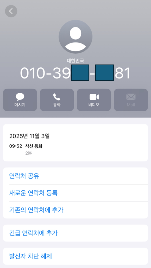 회사에서 근무를 하고 있었는데 갑자기 모르는 번호로 010-39XX-XX81 전화가 왔습니다!